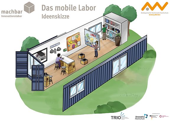 Im Rahmen des Hochschulverbunds Transfer und Innovation Ostbayern (TRIO) arbeitet das machbar Innovationslabor an der Konzeptionierung, dem Aufbau sowie der Erprobung eines physischen, mobilen sowie virtuellen Innovationslabors am Beispiel der Gesundheitswirtschaft. Die physische Variante ist bereits an der OTH Amberg-Weiden etabliert. Als nächsten Schritt folgt nun die Inbetriebnahme des mobilen Innovationslabors.