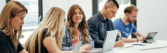 Rund 50 % des Studiums sind praxisorientiert – auch deine KI-Kompetenzen baust du an realen Anwendungsfällen auf.