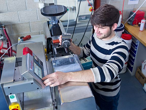 Unsere Studierenden arbeiten und forschen in einem spezialisierten Labor für Kunststoffverarbeitung. Das bietet Ihnen eine Fülle an Möglichkeiten: Sie lernen u. a. an hochmodernen Maschinen, Kunststoffe herzustellen und zu verarbeiten. Im Rahmen Ihrer Praktika und bei Ihren Projektarbeiten nutzen Sie die komplette Ausstattung, um auch eigene Ideen zu überprüfen und praktisch umsetzen.