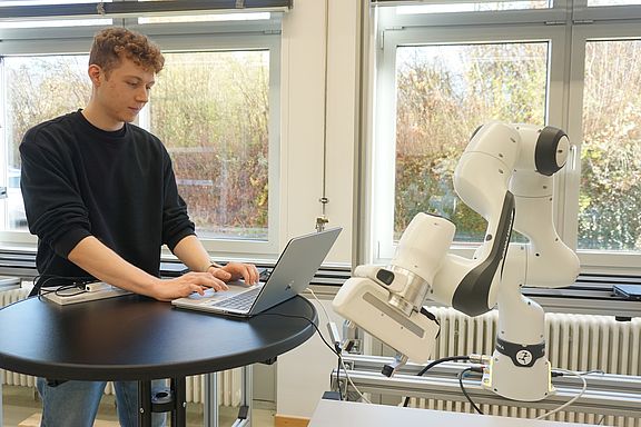 In modernen, innovativen Laboren kannst du in realen, industrienahen Umgebungen arbeiten. Wir bieten eine auf SAP basierende Beispielfabrik, in der Roboter Fertigungsprozesse automatisieren oder Abläufe aus der Logistik optimiert werden. In dieser Lernumgebung kannst du viele betriebliche Prozesse selbst gestalten und starten. Damit bist du fit für die Industrie, um dort weitere Praxisprojekte oder deine Abschlussarbeit in einem produktiven Umfeld zu erstellen.