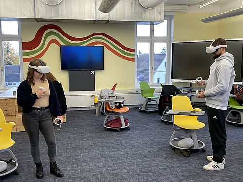 Besonders stolz sind wir darauf, dass das Konzept inzwischen auch an Schulen umgesetzt wird: Im Wahlfach Extended Reality gestalten Schülerinnen und Schüler gemeinsam mit Miriam Hierold eigene VR Escape Rooms und erleben Bildung auf völlig neue, immersive Weise.