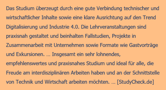 Der Master-Studiengang Wirtschaftsingenieurwesen - Digital Engineering & Management an der OTH in Weiden zeichnet sich durch kleine Studiengruppen und somit durch die Möglichkeit zur intensiven Zusammenarbeit zwischen Studierenden und Dozierenden aus. Die Fakultät Wirtschaftsingenieurwesen und Gesundheit ist geprägt durch ein persönliches Umfeld, ein lebendiges Partnernetzwerk (siehe auch PartnerCircle der OTH Amberg-Weiden), internationale Kontakte und eine ausgeprägte Nähe zu wichtigen regionalen Unternehmen. Wir legen in unseren Studiengängen großen Wert auf einen hohen Praxisbezug. Im Rahmen von Projektarbeiten u.ä. haben Sie die Möglichkeit, praktische Fragestellungen zu beantworten und umzusetzen.