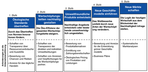 Abbildung 1 Fünf Stufen nachhaltiger Innovationen (Nidumolu et al. 2009, entnommen aus Horvath 2011)