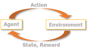 Im Folgenden wird hauptsächlich Reinforcement Learning (RL) eingesetzt. Hierbei führt ein Agent beliebige Actions aus. Als Rückmeldung erhält er dann vom Environment den neuen State und einen Reward. Der Reward ist umso höher, je erfolgreicher die Action war. Durch den erhaltenen Reward kann die Ausführung zukünftiger Actions optimiert werden.